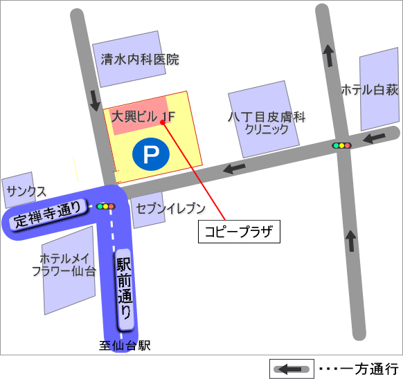 ※お車でのお越しの際、駅前通りからは進入できません。